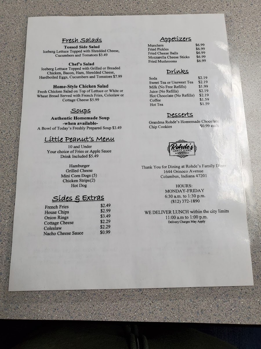 Welcome to Rohde's Family Diner, a beloved dining oasis nestled in the heart of Columbus, IN. Known for its welcoming atmosphere, this diner is a favorite among locals seeking comfort food that feels like home.